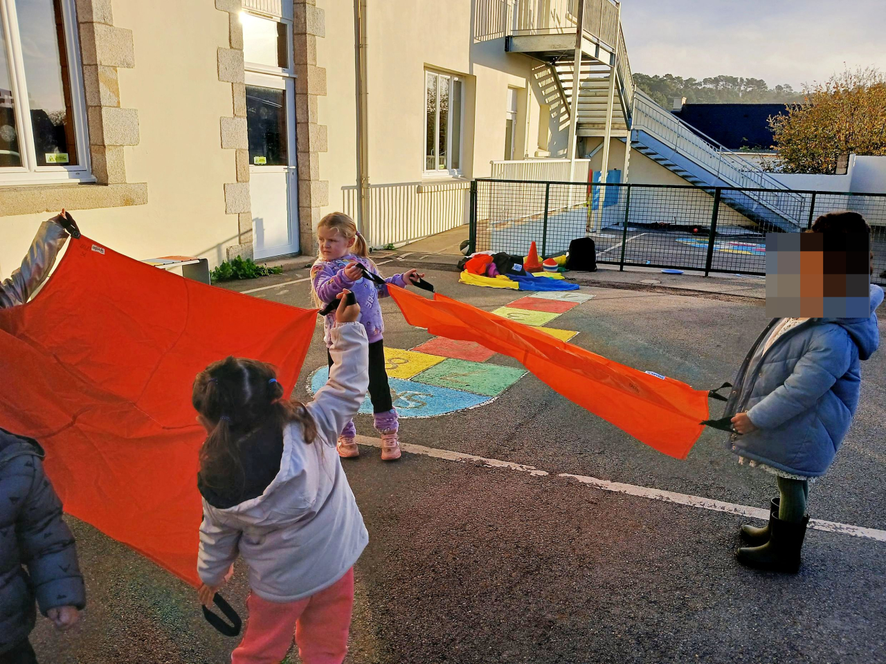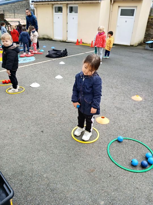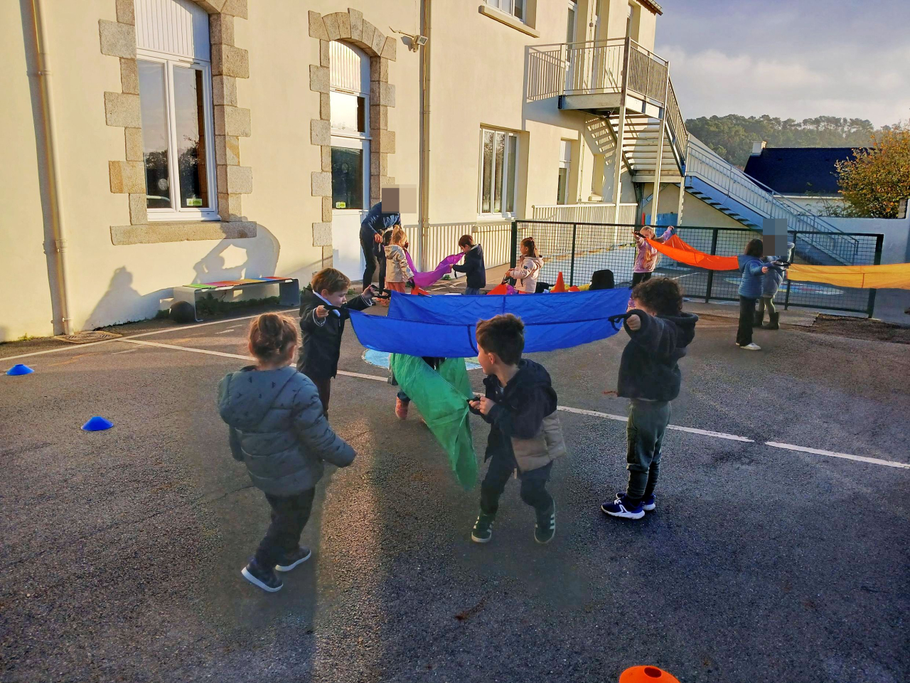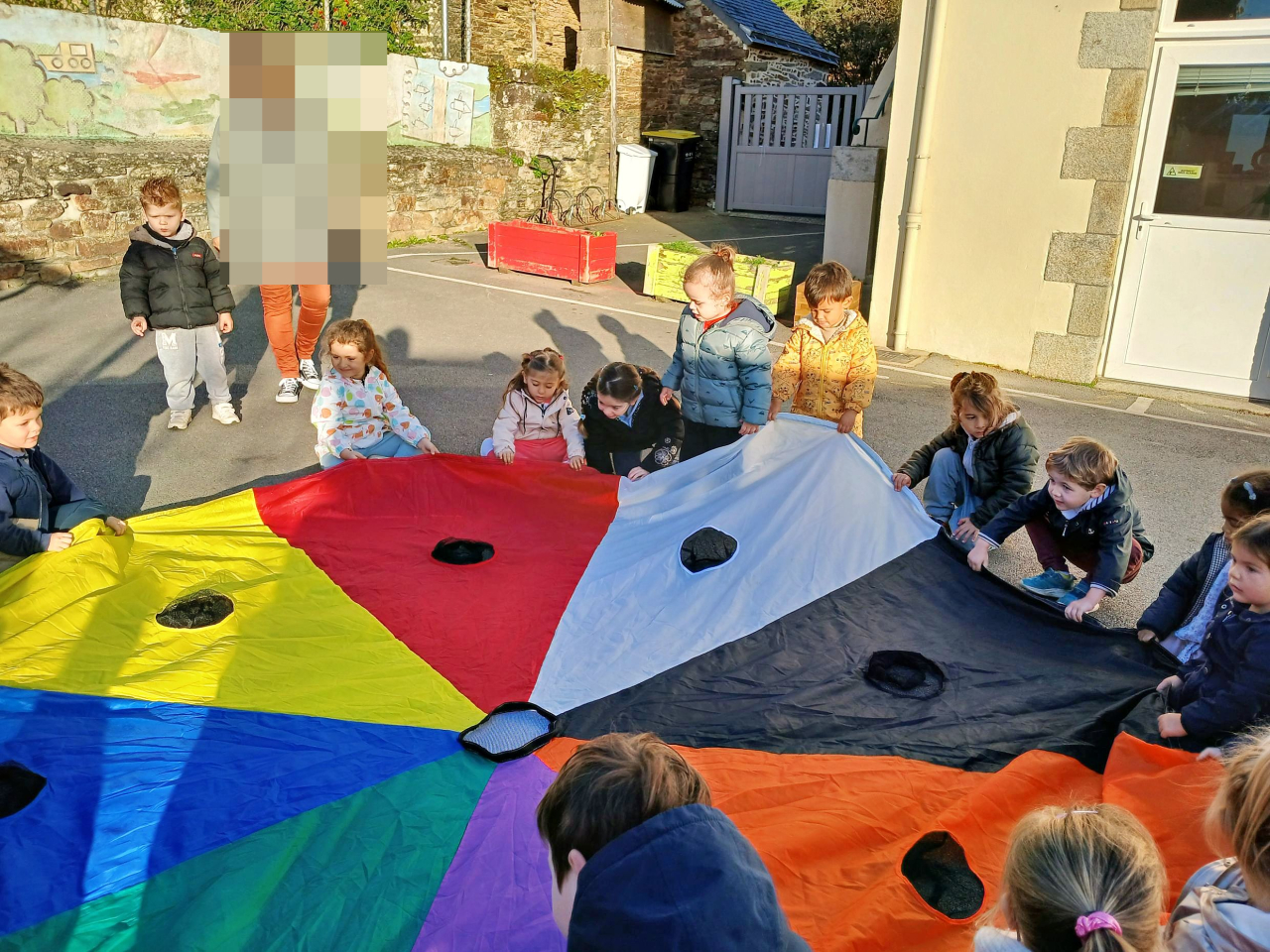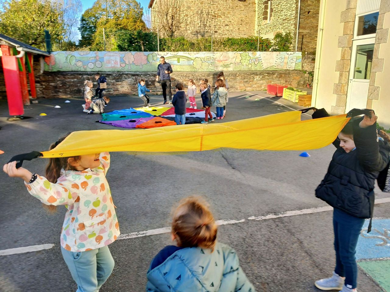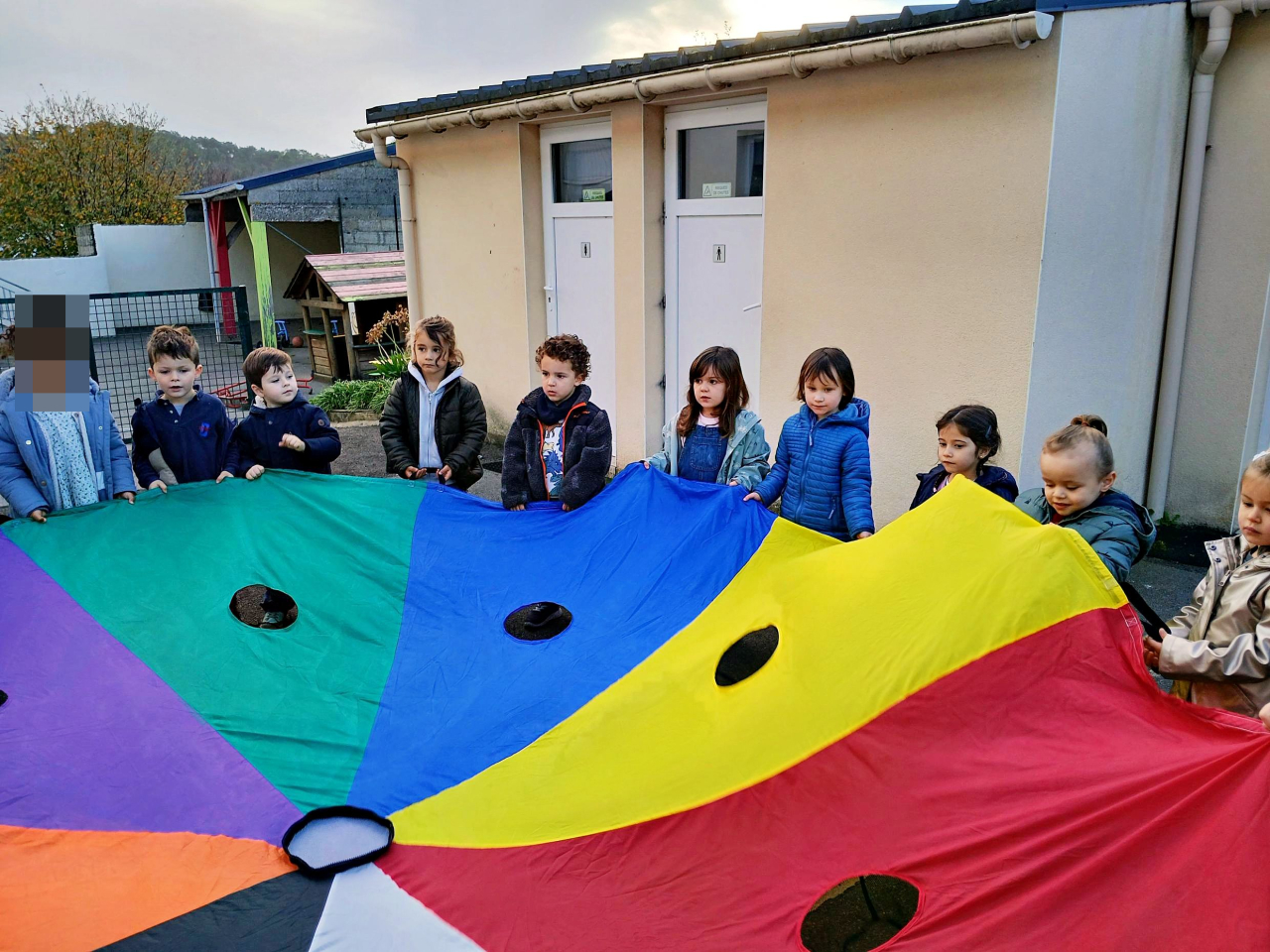 Les élèves de maternelle bénéficient en ce moment d'interventions en EPS avec Nicolas, animateur de l'UGSEL. Ils ont ainsi découvert le parachute, les grands pieds, le pool-ball, le kin-ball et autres jeux...