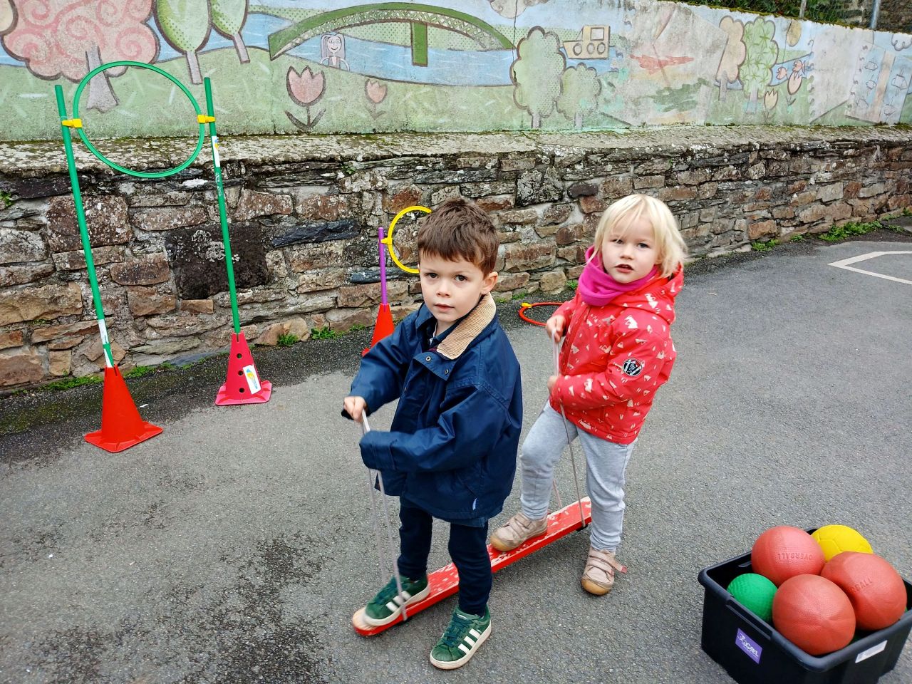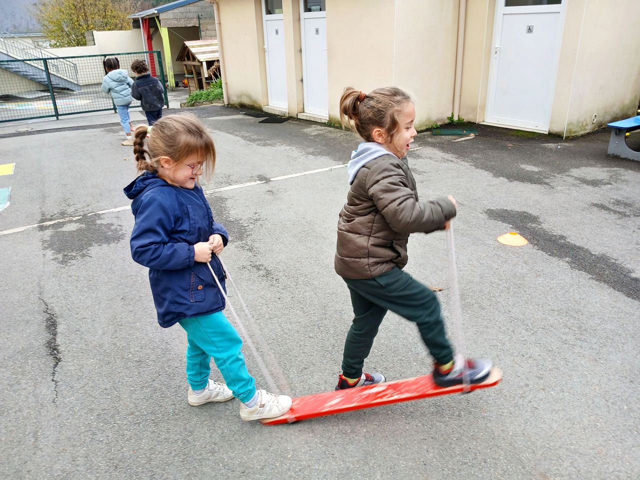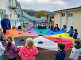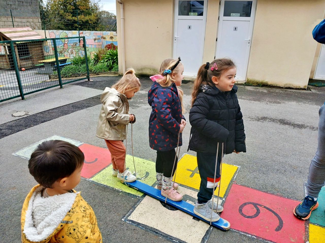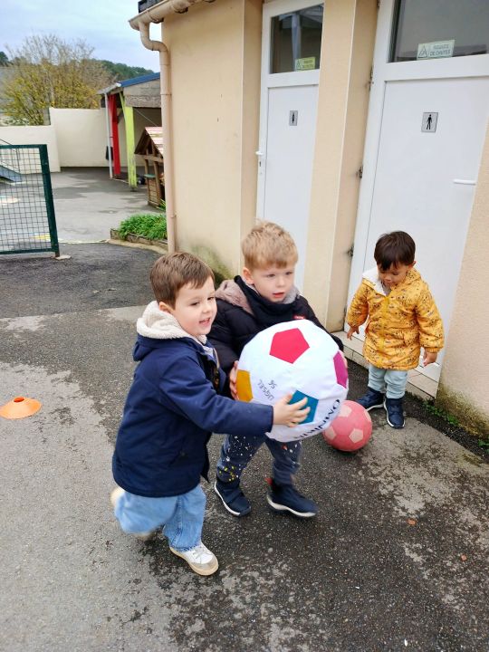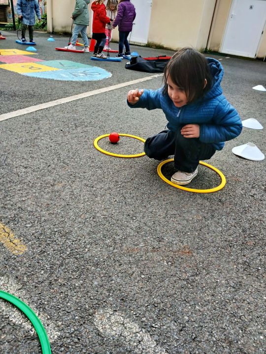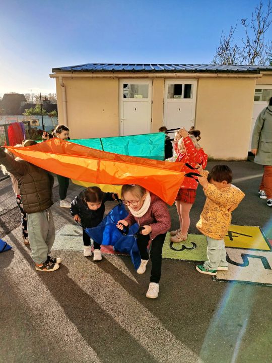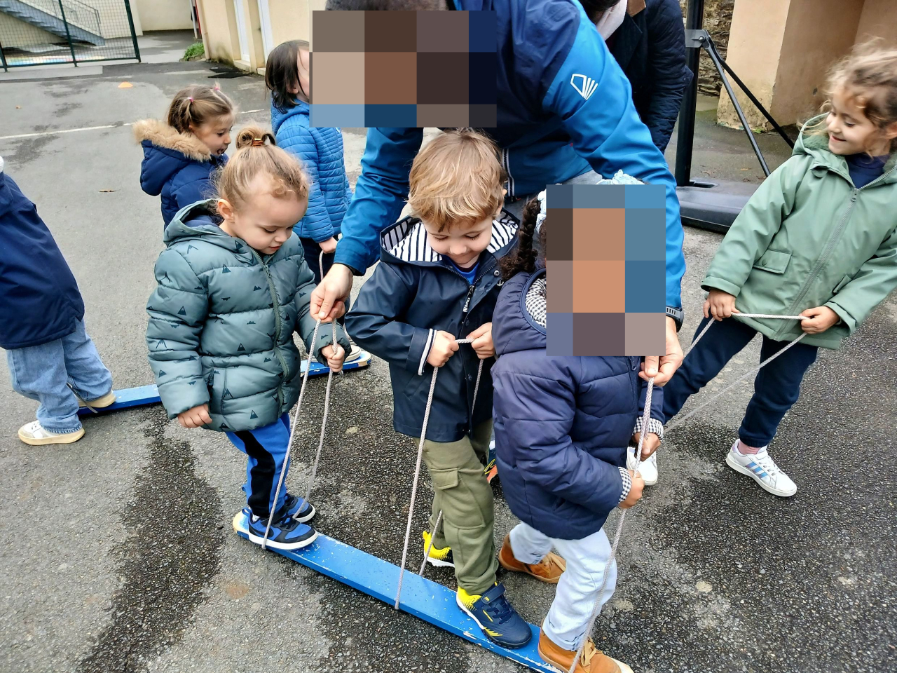 Les élèves de maternelle bénéficient en ce moment d'interventions en EPS avec Nicolas, animateur de l'UGSEL. Ils ont ainsi découvert le parachute, les grands pieds, le pool-ball, le kin-ball et autres jeux...