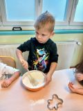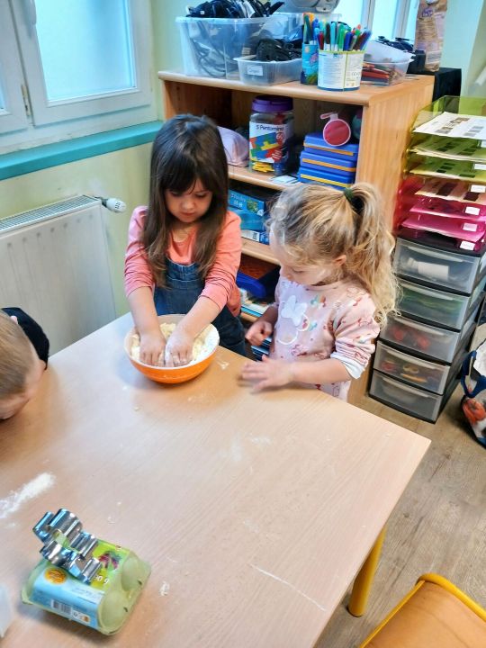 Les élèves de maternelle ont travaillé pendant ce premier mois sur l'histoire du petit bonhomme de pain d'épice. Le projet final était de fabriquer des bonhommes. C'est chose faite, ils étaient drôlement bons et ne se sont même pas enfuis.