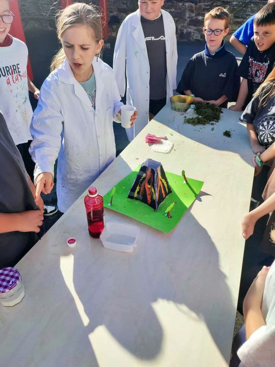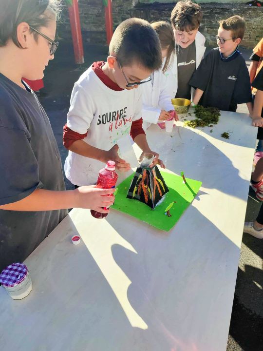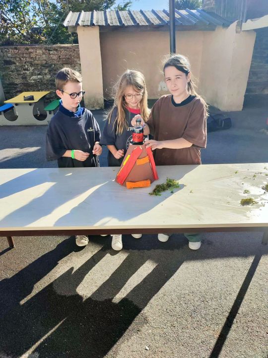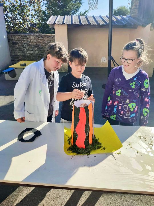Apprendre en faisant, c'est bien plus concret... C'est pourquoi lorsque c'est possible, nous manipulons. En sciences sur ce début d'année, les CM travaillent sur les activités internes et externes de la planète, les inondations, les séismes, mais aussi les volcans.